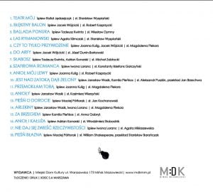 „Ogrody Złudzeń” to miejsce zaskakujących spotkań zupełnie różnych postaci i nastrojów, od przemyśleń Mistrza Wyspiańskiego, przez knajpiane pogawędki o oprychach, lekko absurdalne czy przewrotne historie, po przepiękne liryczne ballady. Muzyka każdej sylwetce i opowieści nadaje zupełnie inną naturę, podziwiam wszechstronność Kompozytora! Mnie najbardziej oczarowały Szafirowa Romanca, Ballada Ponura, Las Rymanowski, i oczywiście Teatr Mój. Dziękuję!